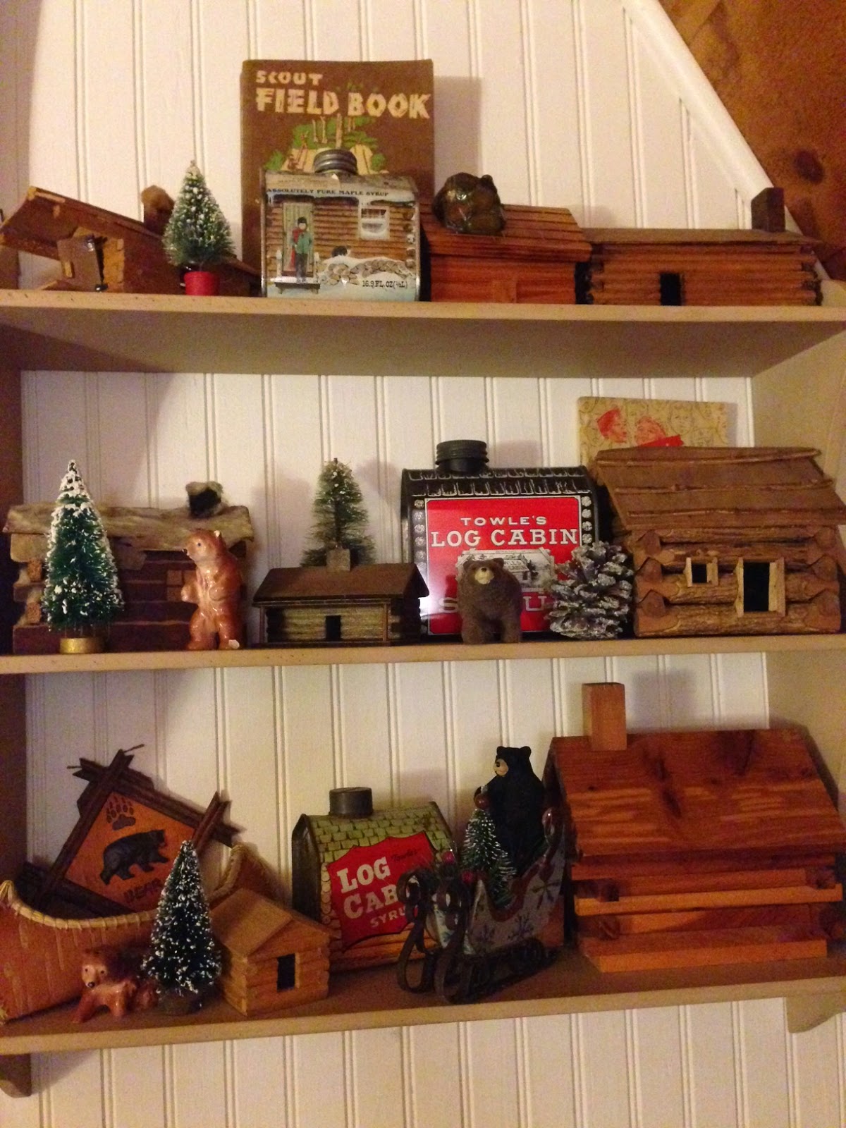 The A frame is looking great. I especially loved the cabins you have collect on your shelf. Have a Happy Thanksgiving.