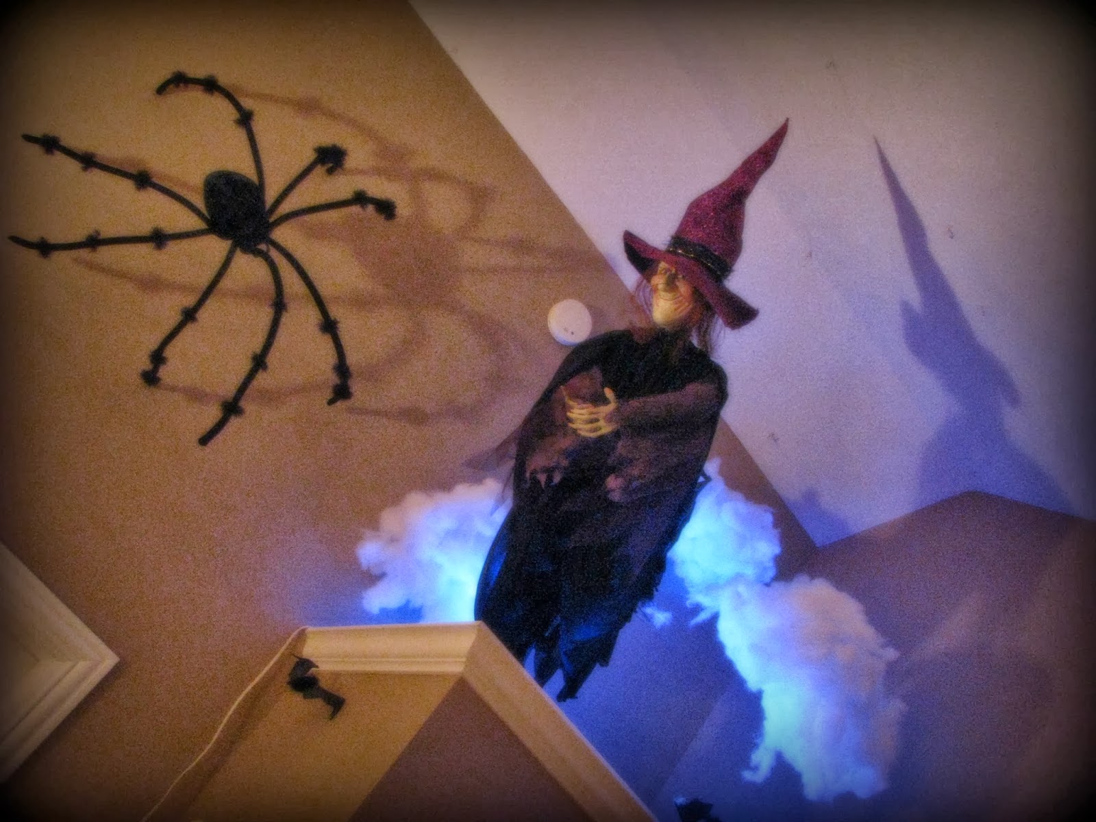 When the ladders were out a few weeks ago, our infamous witch took flight above our stairwell.